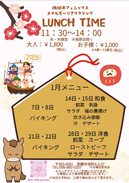 2026年1月 レストラン『ランチ/ランチバイキング』のお知らせ
